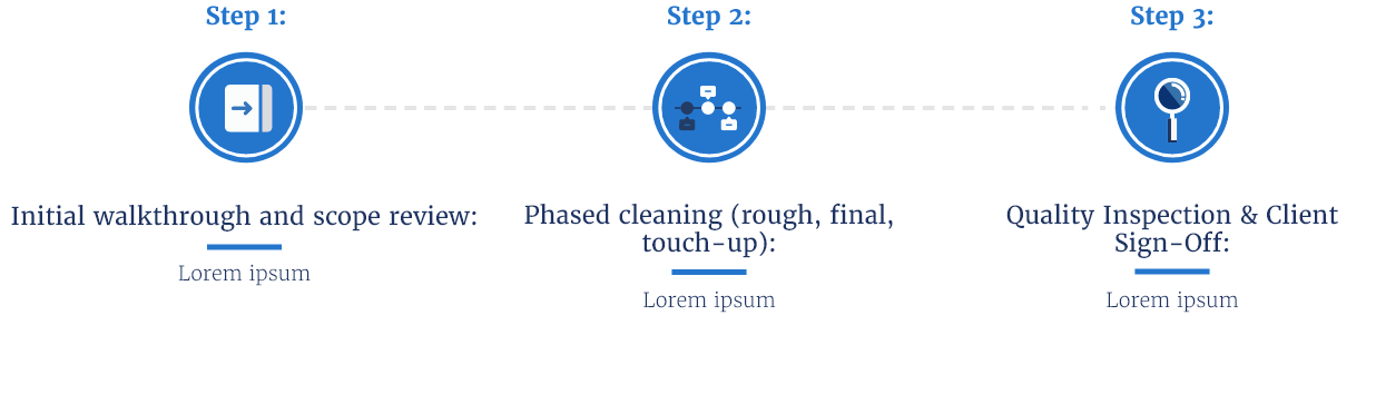 Our cleaning services are backed by a clear, proven process that prioritizes quality, safety, and consistency. At ACM, we tailor our approach to each facility while maintaining the same high standards across all services. Below is an overview of our process and how we deliver reliable, professional cleaning you can count on.